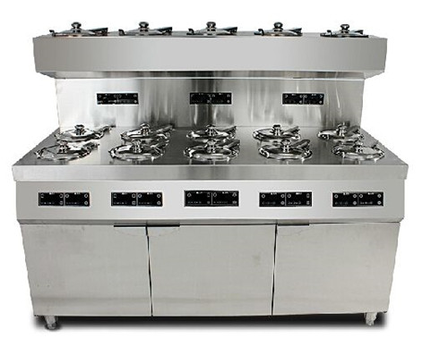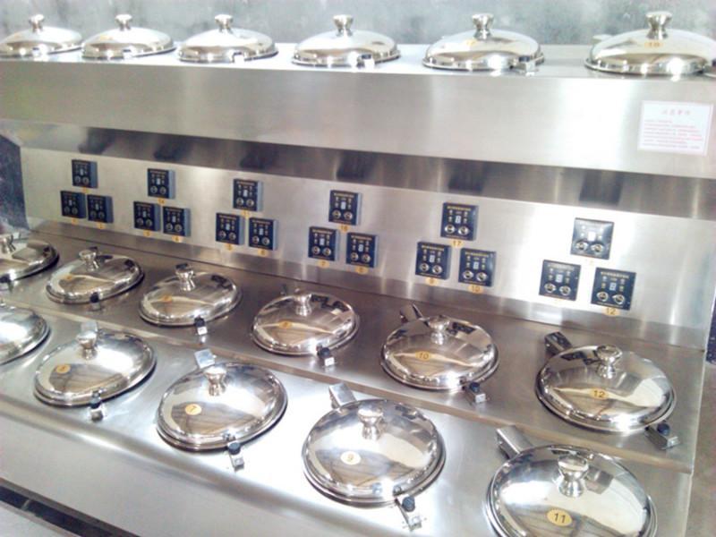 智能煲仔飯機(jī)爐膛可變,它可以放置小煲、中煲、大煲三種容積的鍋具。由此可延伸出智能煲仔飯、煲湯、煲粥、煲藥、火鍋、炸等功能。專業(yè)版煲仔飯機(jī)爐膛固定不可變,它只能做小煲,專業(yè)做煲仔飯,也可做一些小份的煲仔粥,煲仔菜。全能型煲仔飯機(jī)是在智能煲仔飯機(jī)上增加無蓋的平頭爐,可有于煎、炒、煮、炸、燒烤等。上述三種機(jī)型可以混搭,例如:一臺10頭的機(jī),其中可以做2個智能煲仔爐、4個專業(yè)煲仔飯、2個無蓋平頭爐,這樣即可滿足全天候,多品種餐飲制作。